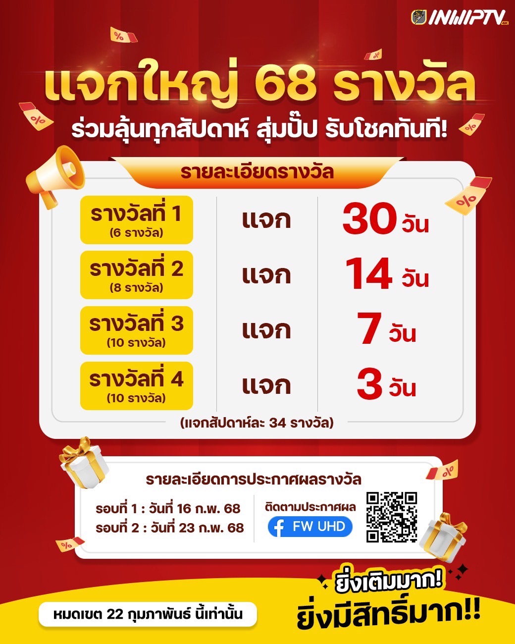 (เเจกสัปดาห์ละ 34 รางวัล)