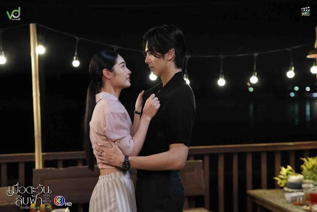 ละคร ‘เมื่อตะวันลับฟ้าก็จะเป็นเวลาของดวงดาว’ หรือชื่ออังกฤษ ‘Until the Sun Meets the Star’ จะเล่าเรื่องราวของสองพี่น้องที่ชีวิตพลิกผันหลังจากที่พ่อเสียไปในอุบัติเหตุ ทั้งคู่ต้องย้ายไปอยู่กับน้าชายที่มีนิสัยดี แต่ติดการพนัน ทำให้ชีวิตครอบครัวต้องประสบกับความยากลำบาก โดยเฉพาะพี่สาวอย่าง นับดาว ที่ต้องเเบกรับภาระดูแลบ้านและส่งน้องสาว น้ำฟ้า ให้เรียนจบปริญญาตรี