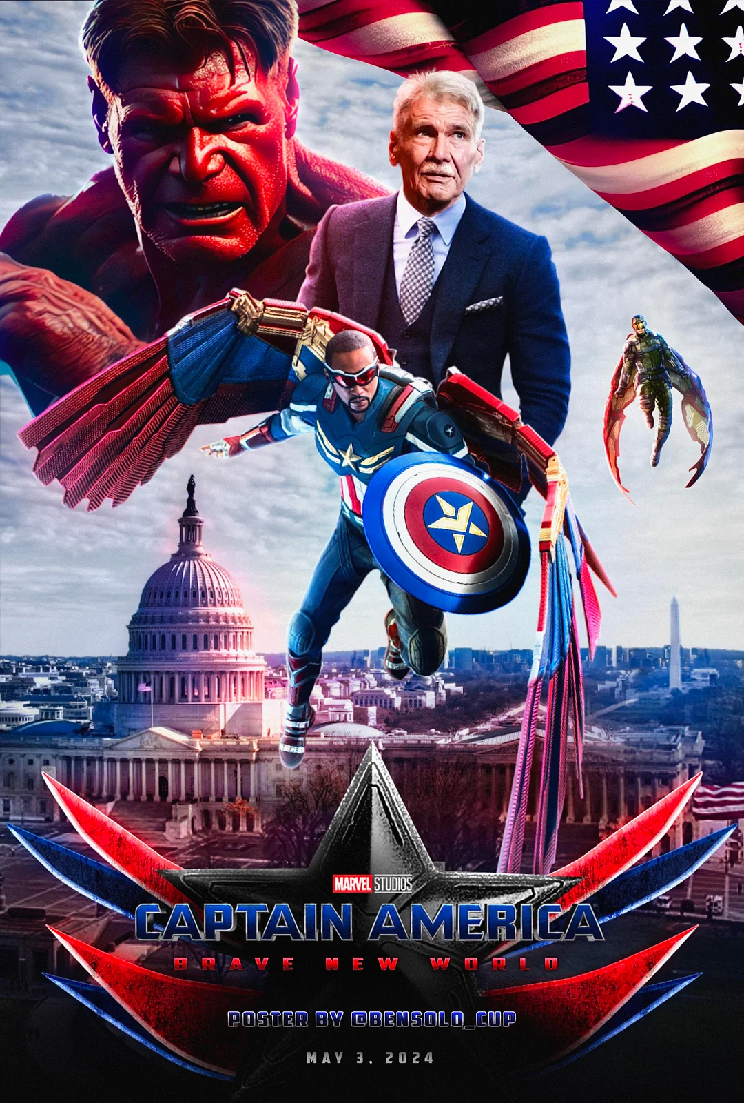 แอนโธนี แม็คกี้ กลับมาสวมบทแซม วิลสัน อีกครั้งหลังจากเหตุการณ์ใน The Falcon and the Winter Soldier ซึ่งเป็นจุดเริ่มต้นของการเดินทางในฐานะกัปตันอเมริกาคนใหม่ แม้ว่าเขาจะไม่ได้มีเซรุ่มซูเปอร์โซลเยอร์ ไม่มีพละกำลังเหนือมนุษย์เหมือนสตีฟ โรเจอร์ส แต่สิ่งที่ทำให้แซมแตกต่างคือความศรัทธาในความถูกต้องและความมุ่งมั่นที่จะเป็นฮีโร่ของประชาชน อย่างไรก็ตาม การเป็นกัปตันอเมริกาไม่ใช่เรื่องง่าย โดยเฉพาะในโลกที่เต็มไปด้วยความขัดแย้งทั้งด้านการเมืองและภัยคุกคามที่ซ่อนเร้น